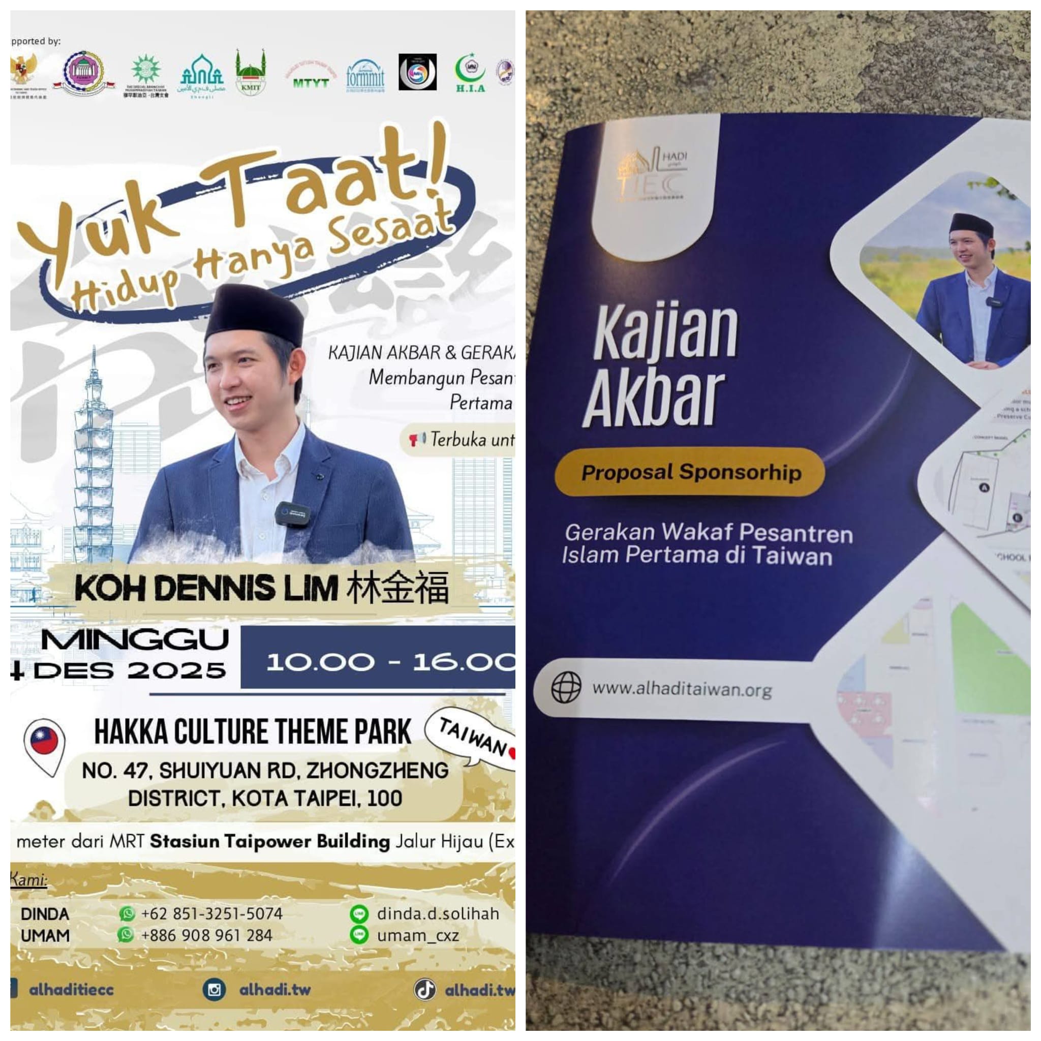 Taiwan, medianetral.com – Aliansi Berbagai Organisasi PMI di Taiwan seperti Organisasi Pantura, Forbes, Pumat Majalengka, Wong Songgom, dan Sedulur Laskar Cirebon Lakukan Galang Dana Asosiasi Al Hadi di TMS Taipei City dan sekitarnya demi terselenggaranya acara Tabligh Akbar pada tanggal 14 Desember 2025, yang di isi oleh penceramah Koh Dennis Lim 林金福 di Hakka Cull Ture Theme Park Nomor 47. Shuyuan RD ZhongZheng Distric Taipei City. Minggu 14 September 2025