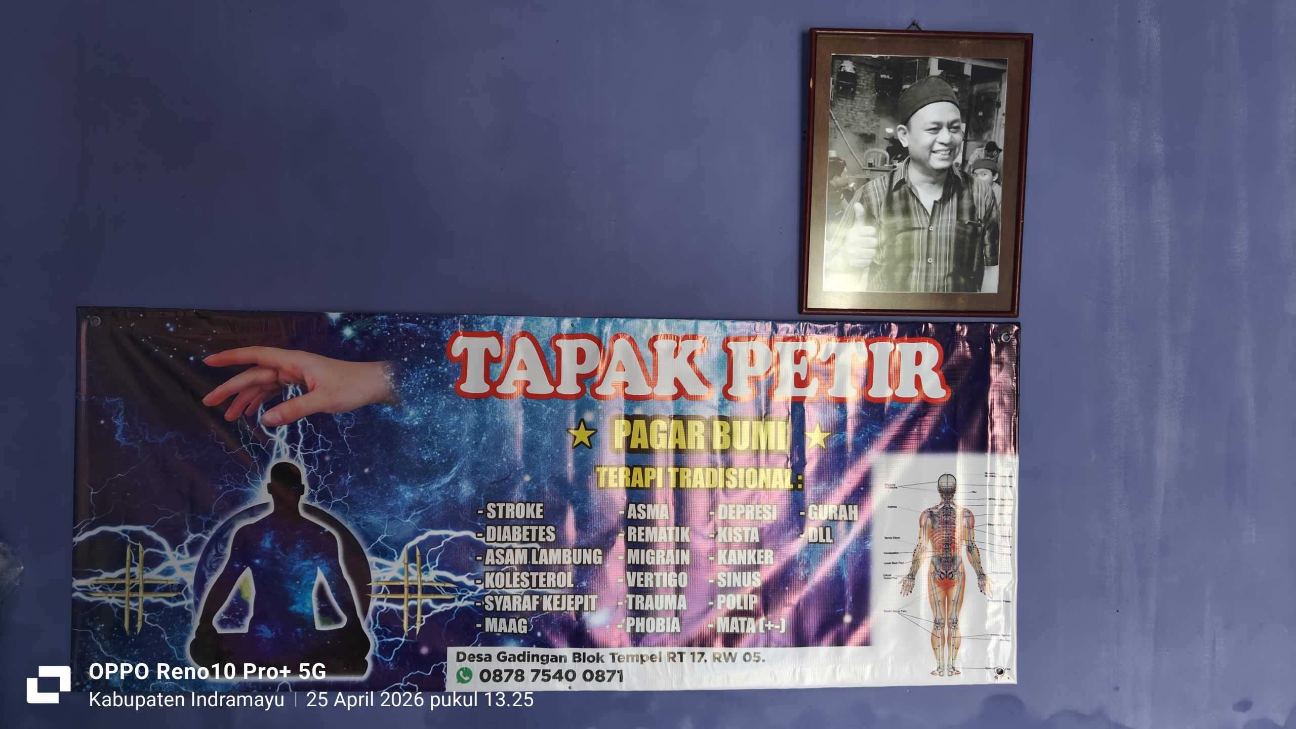 INDRAMAYU, MEDIANETRAL.COM – Karso, warga Desa Gadingan, Kecamatan Sliyeg, Kabupaten Indramayu, dikenal dengan sebutan “Tapak Petir” karena metode terapi tradisionalnya yang khas. Pria paruh baya ini membuka praktik pengobatan alternatif dan sudah dipercaya warga sejak 17 tahun terakhir pernah buka praktek di jakarta, dan kini hadir menetap buka praktek di rumahnya sendiri Desa Gadingan.